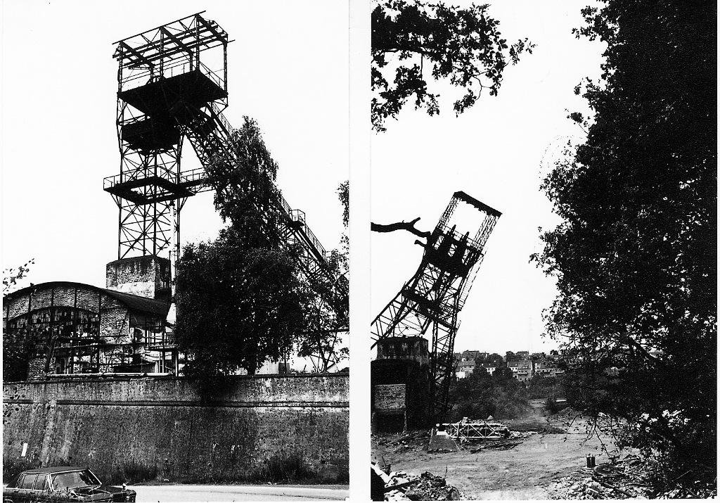 Nun führt der Fußweg wieder den Hang hinauf zur Kaiserstraße. Auf halber Höhe bietet sich ein großartiger Blick (B14) auf die Anlage der Grube Reden und die mächtige Bergehalde. Links dem Verlauf der Kaiserstraße folgend, erreicht man den Abzweig “Verein für deutsche Schäferhunde“. Diesem folgend, erreicht man die Straße „In den Akazien“ mit den beiden Doppelhäusern Nr. 9/11 und Nr. 13/15 (B15). Im Tal stoßen wir wieder auf die Itzenplitzstraße. Wirtschaften, Geschäfte und Bürgerhäuser prägten einst das Straßenbild, in Höhe des Betsaales biegen wir wieder in die Straße „Am Itzenplitzer Weiher“ ein und befinden uns wieder im Bereich der Grube Itzenplitz.